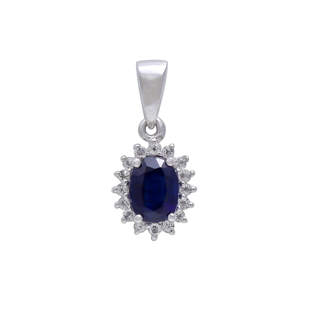 Diffused Blue Sapphire Pendant with Natural White Zircon